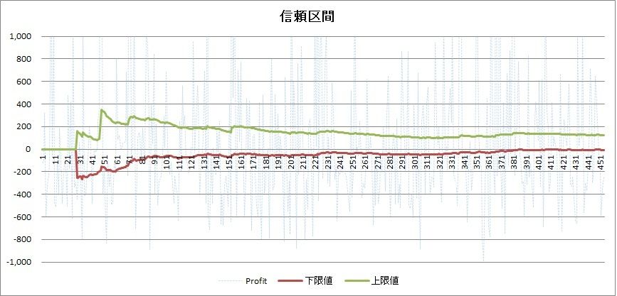 要は、母集団の損益平均が5%の危険率で0以上と推定されるということみたい。
